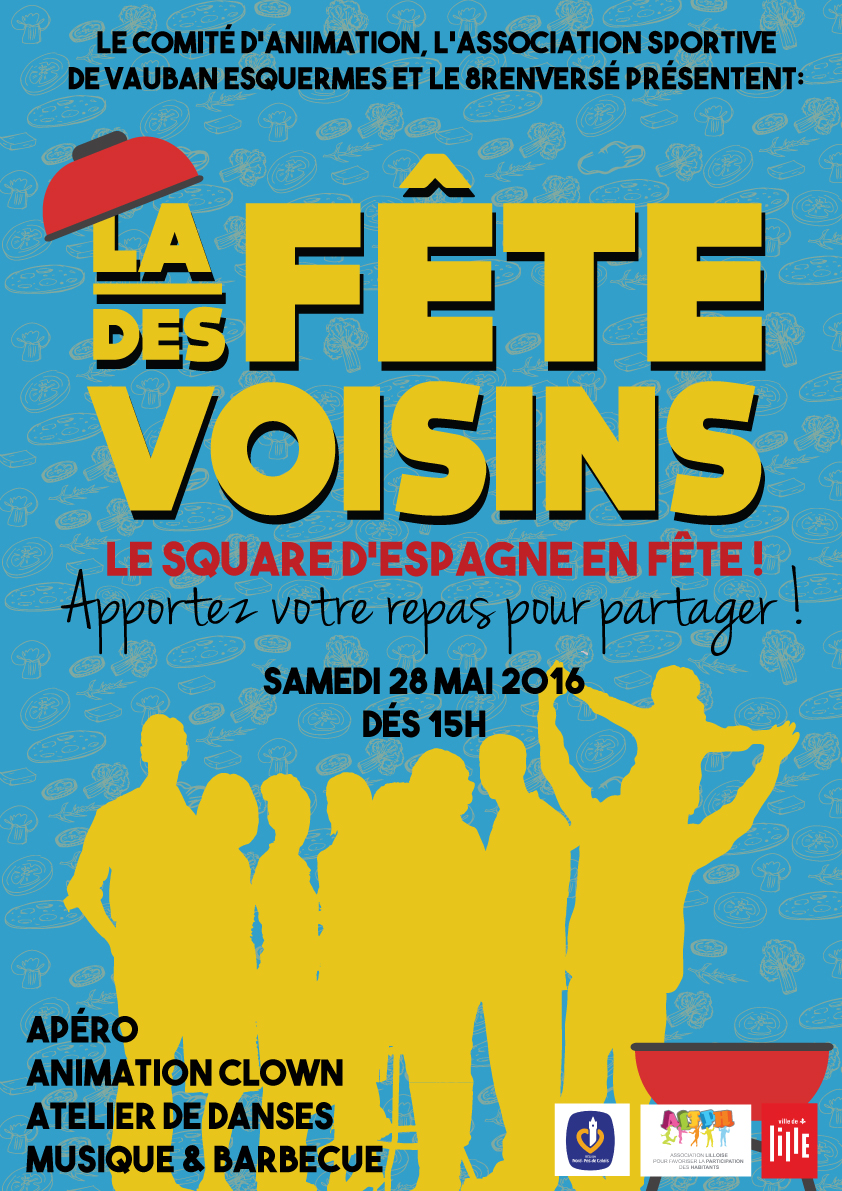 23Mai2016 Fêtes des voisins au square d’Espagne samedi 28 mai ! Posté dans Le Huit Renversé par 8renverse Samedi, en partenariat avec l’association Le CAVE, au square d’Espagne à Vauban, nous fêtons la fête des voisins ! Atelier danse, démo danse, et barbecue dés 15h ! Partagez ! Partager sur X(ouvre dans une nouvelle fenêtre) X Partager sur Facebook(ouvre dans une nouvelle fenêtre) Facebook J’aime chargement… Articles similaires