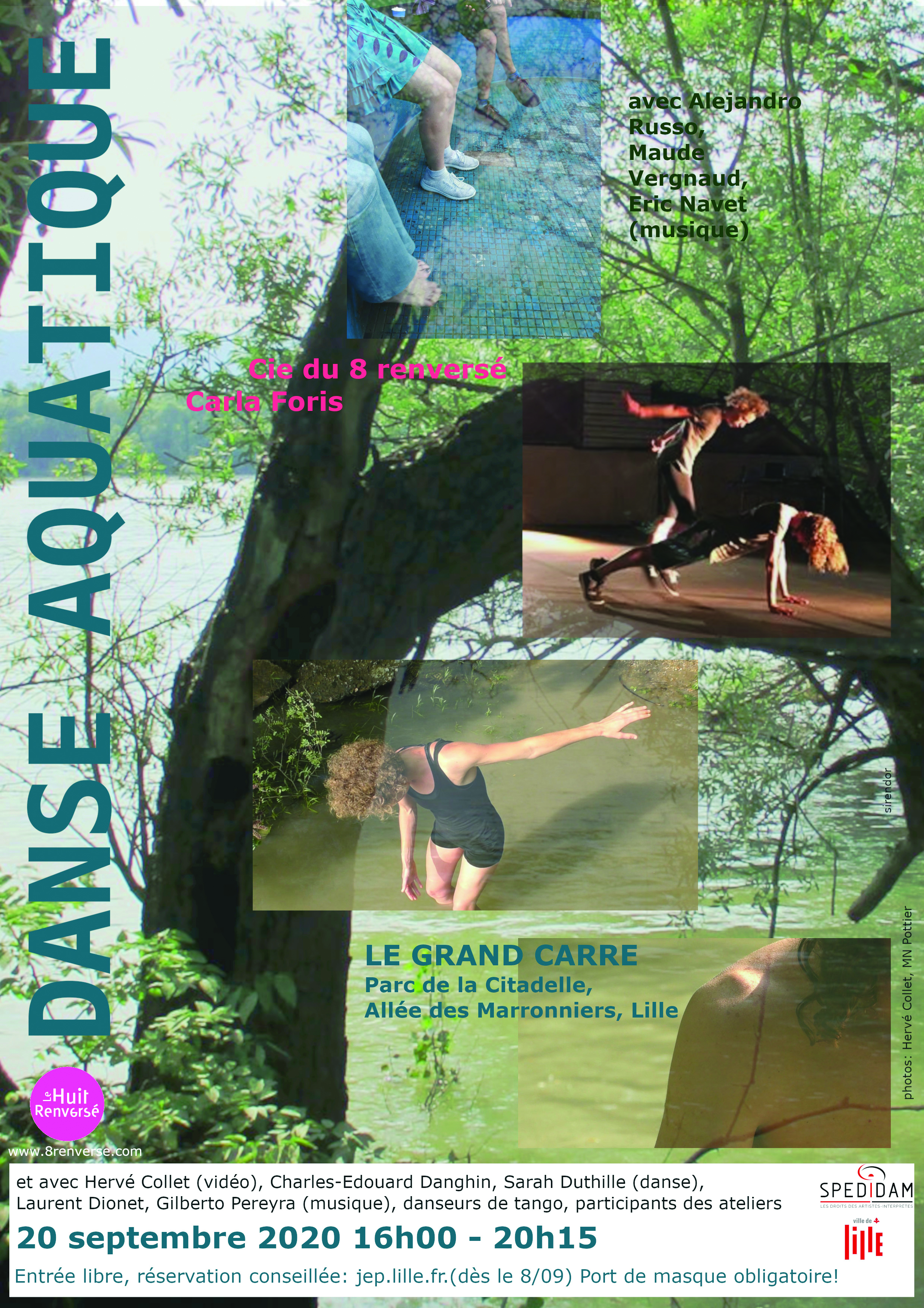 Le corps et l’élément eau sont au coeur des temps dansés, accompagnés souvent par un musicien de la Cie. A la recherche des mouvements organiques, des jeux d’improvisation à 2, en groupe, permettent d’accéder à une créativité et sérénité à la fois. Le processus aboutira à une construction de Présentation de travail dans le cadre des Journées Européennes du Patrimoine le 20 septembre, pour ouvrir l’événement « Danse aquatique » de la Cie du 8 renversé. Mais on peut venir participer à un atelier de découverte tout simplement…