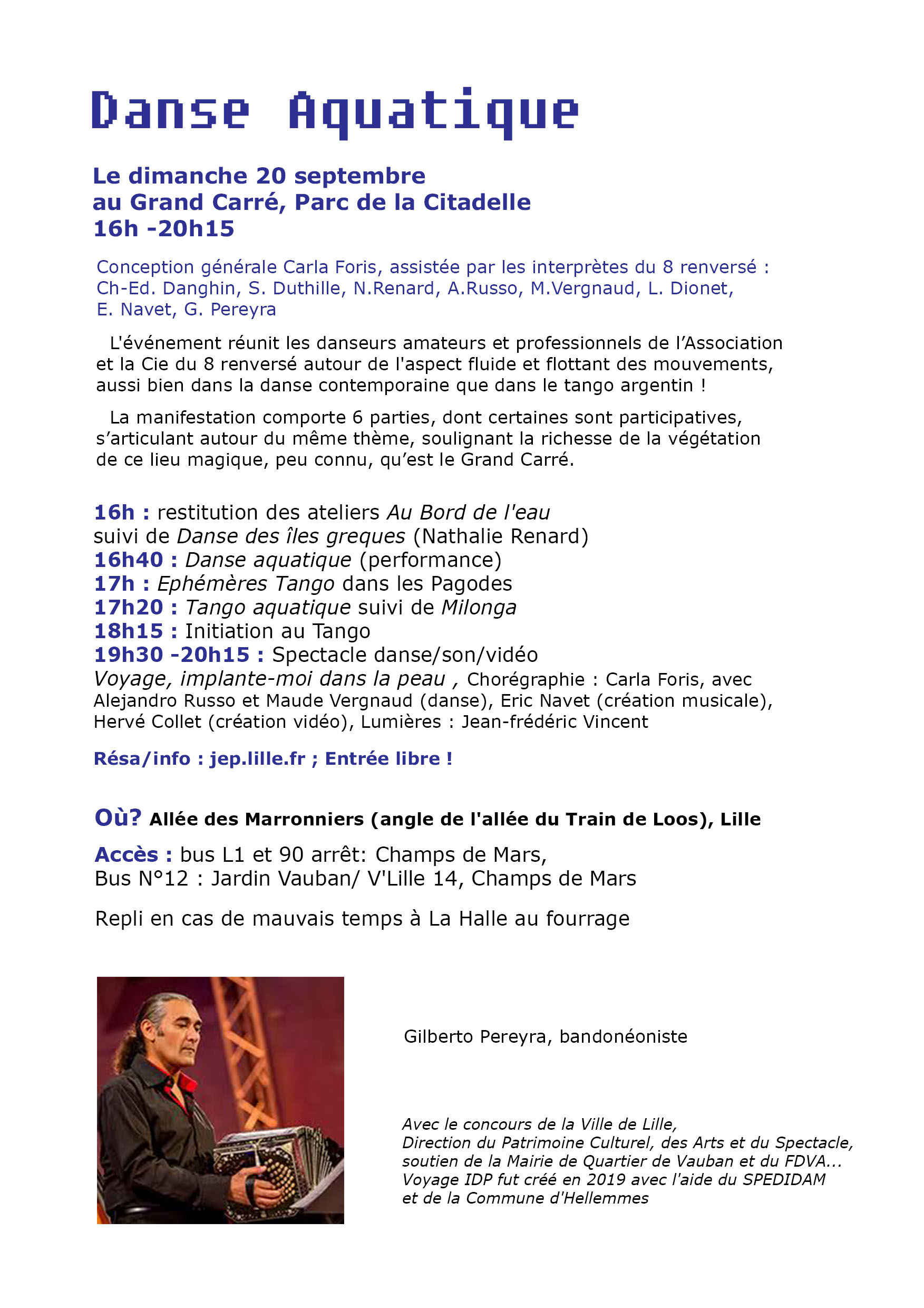 Les Journées européennes du Patrimoine sont annulées à Lille sur décision préfectorale. Notre évènement Danse Aquatique étant programmé dans le cadre des JEP, il est tombé à l’eau …