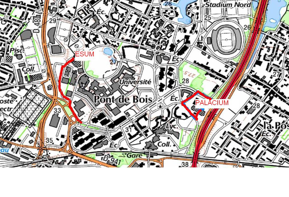 Esum : accès par les parkings le long du boulevard de l’Ouest (tourner à droite après le garage Renault).