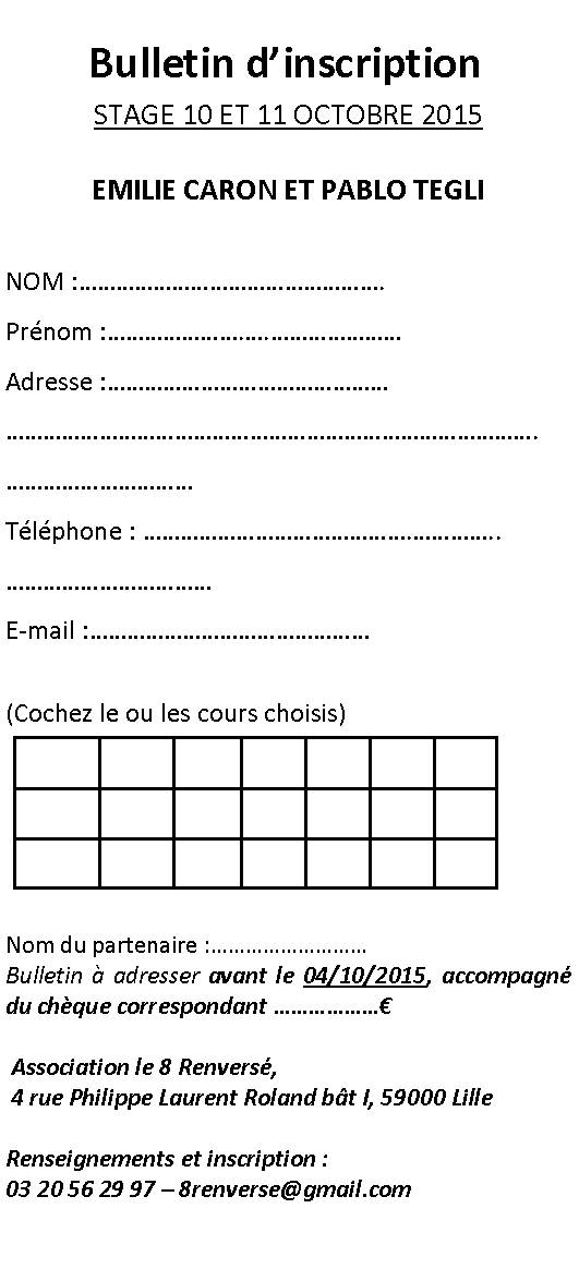 bulletin d’inscription stage 10 et 11 oct Publié 21 septembre 2015 à 531 × 1175 dans STAGES TANGO « Précédent Suivant » Partagez ! Partager sur X(ouvre dans une nouvelle fenêtre) X Partager sur Facebook(ouvre dans une nouvelle fenêtre) Facebook J’aime chargement…